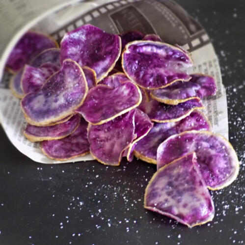 Enjoy a lightly salted, slightly sweet and crunchy snack made from thinly sliced sweet popotoes, baked and then fried to perfection.