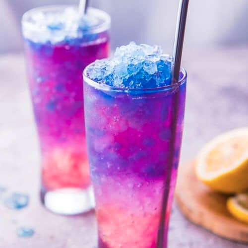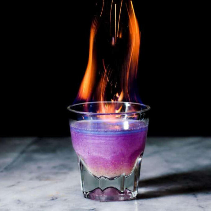 A tall glass filled with crushed ice, lime juice, ginger syrup, a house mixed vodka that changes color upon contact with ice, and finally topped off with tonic water, this vibrant drink will push you To The Limit.