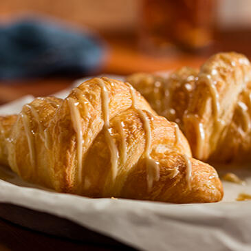 Three light and fluffy croissants, baked to golden brown perfection before being drizzled with a generous coating of honey butter.