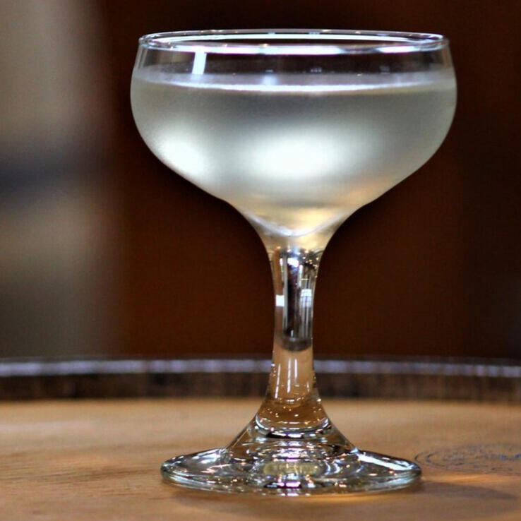 A minty dream poured into a gilded rim coupe glass and garnished with nutmeg. Famously as green as the Arbiter's hair. Does not taste like his famously cute korpokkurs.