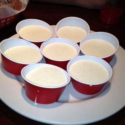 A shot of creamy ranch poured lovingly in a small disposable red cup.